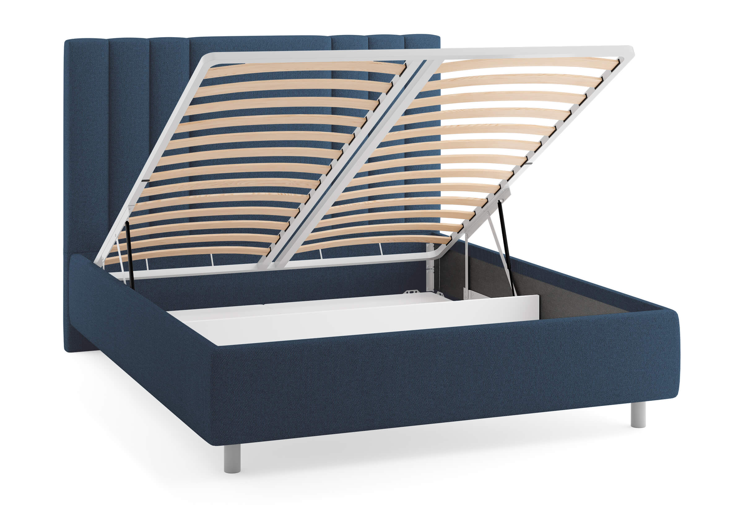 Возможна установка подъемного механизма с вместительным бельевым ящиком. Дно бельевого ящика легко сдвигается для обеспечения уборки под кроватью.