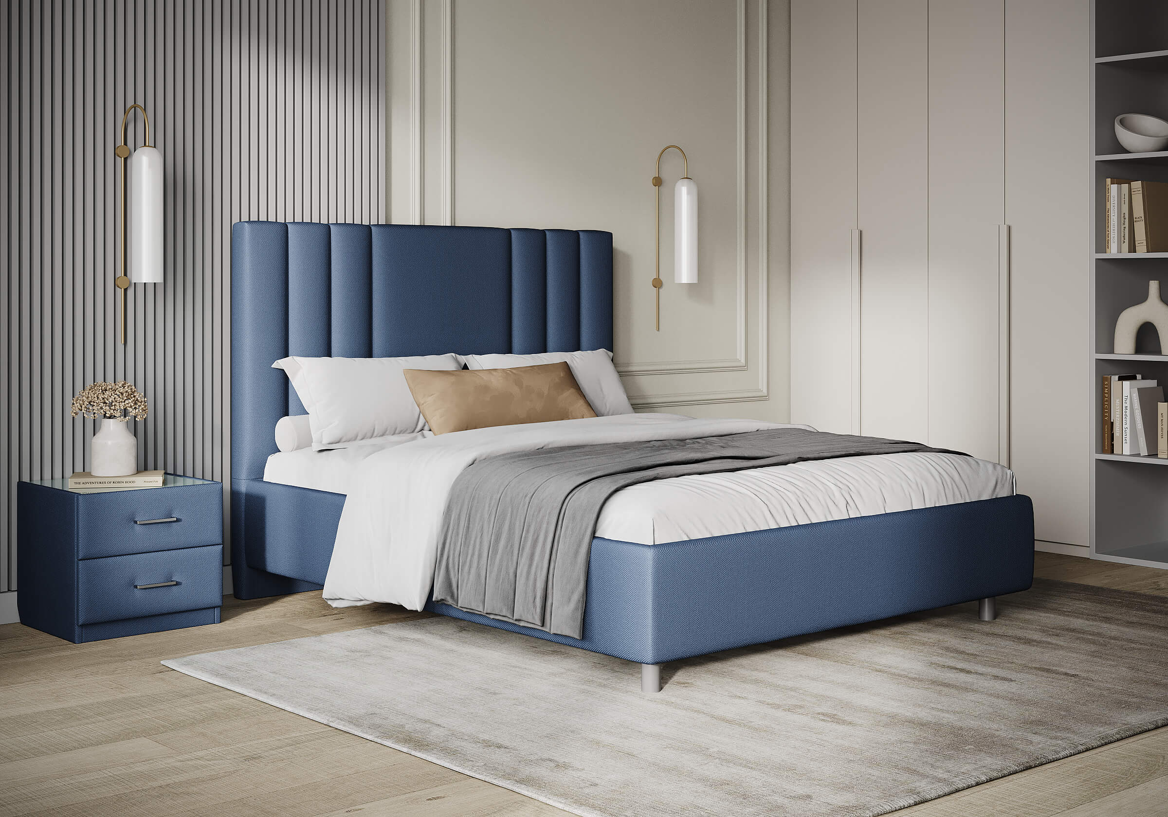 Идеальное сочетание элегантного дизайна и практичных решений. Кровать созданная для тех, кто ценит как стиль, так и удобство в повседневной жизни. Высокое изголовье придаёт сдержанную, но выразительную форму. Благодаря минимализму линий, модель гармонично сочетается с интерьерами в разных стилях. Увеличенный просвет от пола делает уход простым и быстрым, в том числе роботом–пылесосом. При необходимости кровать может быть укомплектована разборным или неразборным металлическим основанием с ламелями, подъемным механизмом с бельевым ящиком и трансформируемым основанием Aquarius.