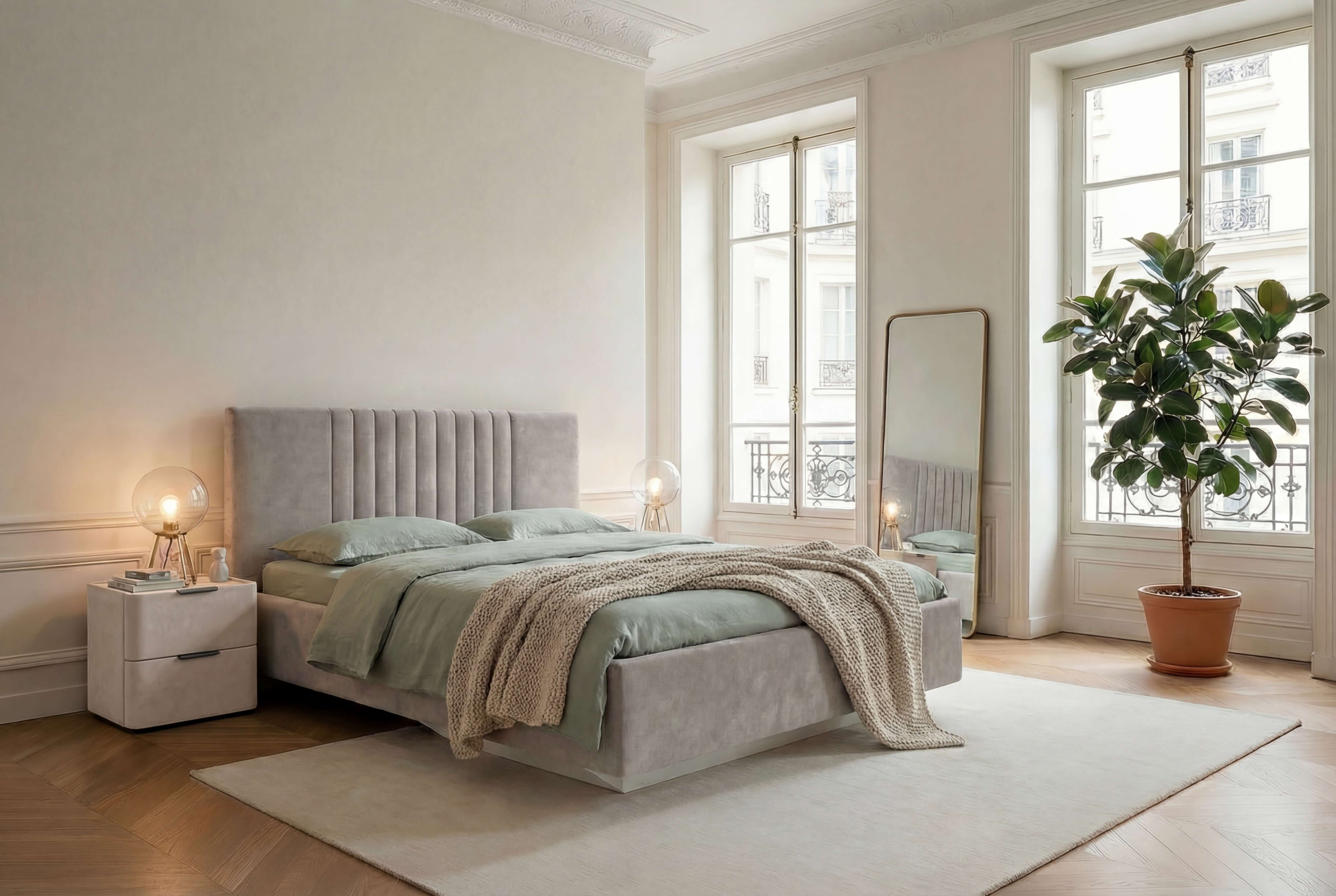 Интерьерная кровать — где стиль встречается с комфортом. Благодаря своей конструкции, создаётся эффект «парения» — как будто кровать не касается пола. При этом, внутри находится подъёмный механизм с вместительным бельевым коробом. Это позволяет эффективно использовать каждый сантиметр пространства — хранить постельное бельё, одеяла или сезонные вещи. Форма, материалы и отсутствие лишних деталей делают эту кровать идеальным решением для интерьеров в стиле минимализм или современном. Кровать подчеркивает пространство — становясь выразительным акцентом.