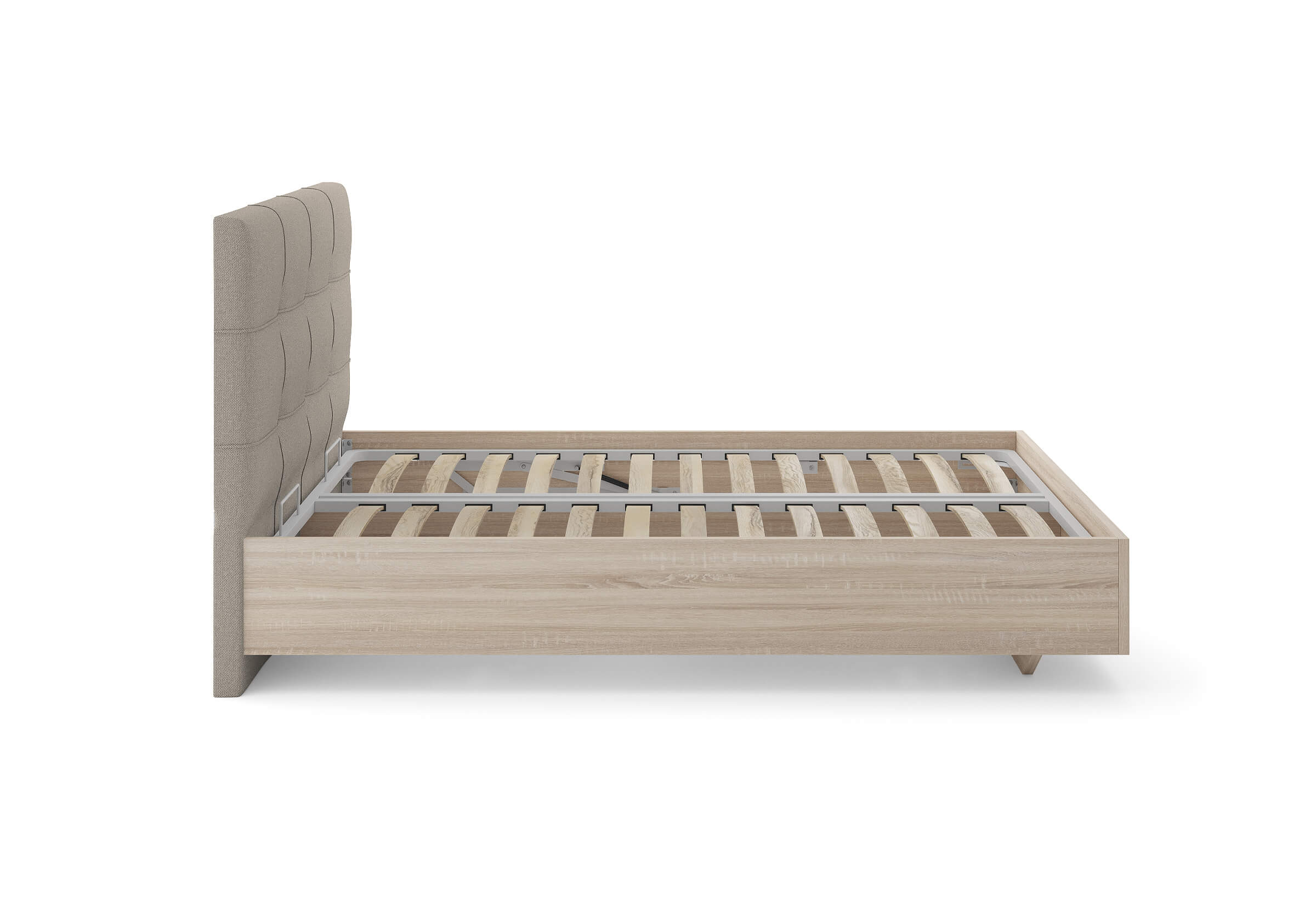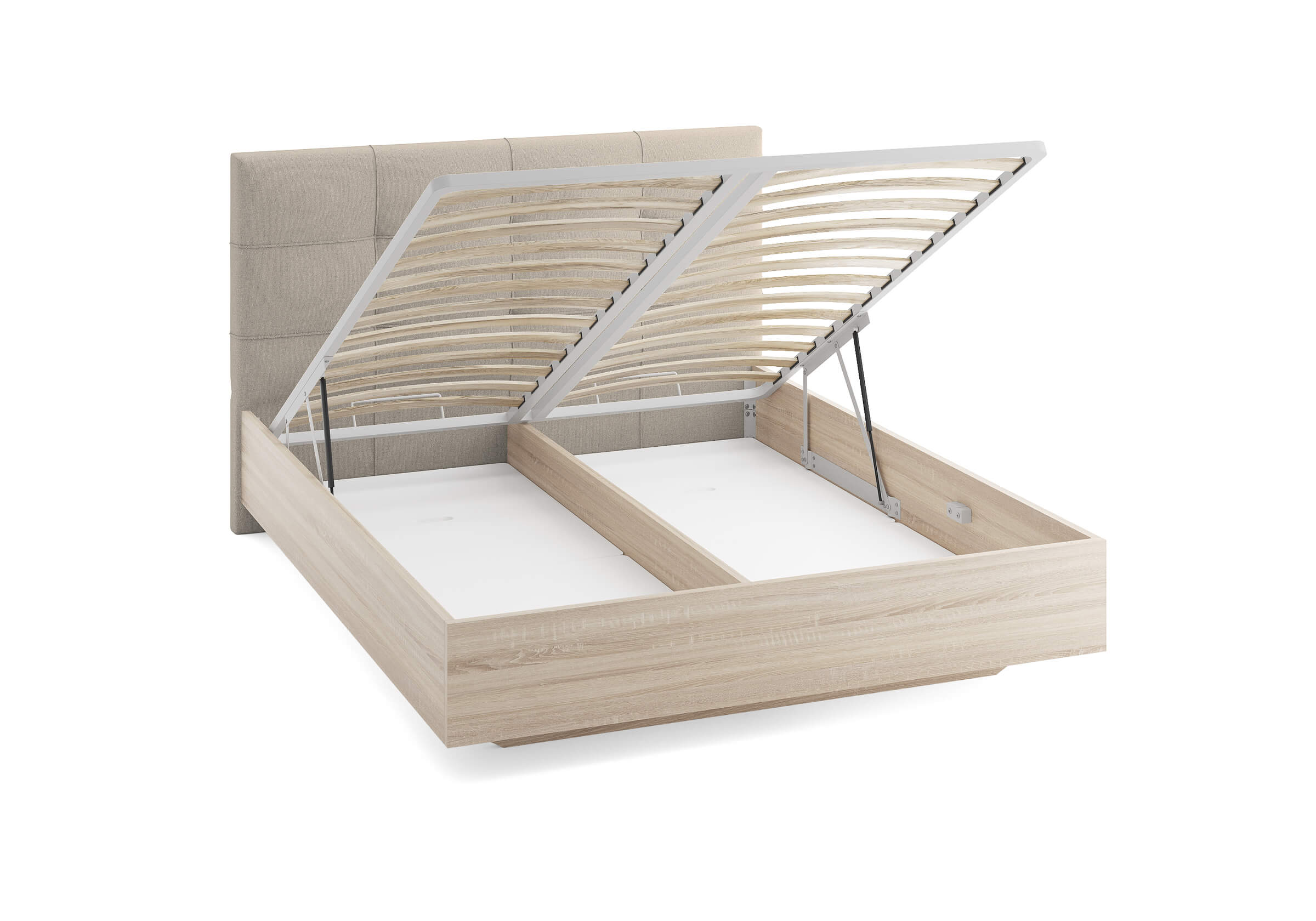 Возможность установки подъемного механизма со вместительным бельевым коробом, 13 см глубиной. Дно бельевого ящика легко сдвигается, что позволяет просто убраться под кроватью.