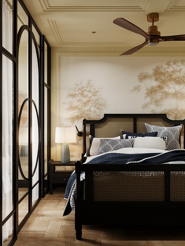 Для создания гармоничного места для отдыха и сна необязательно заполнять всю комнату голубыми цветами. В большинстве случаев это неуместно. Голубая кровать может стать акцентом, на котором будет сконцентрировано внимание. Вокруг этого центрального элемента можно организовывать стальное пространство.